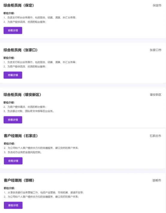 (一)具有良好的政治素质和道德品行,遵纪守法,诚实守信。 (二)大学本科及以上学历(以招聘岗位最终要求为准),毕业时间在2025年1月至2026年7月的境内外高校毕业生。具备良好的公文写作能力,熟练使用EXCEL、PPT等各类办公软件,具备一定沟通协调和分析解决问题的能力。 (三)应聘者须为最高学历后初次就业,未与其他单位建立劳动关系,未参加社会保险。 (四)具有良好的职业素养和团结协作精神,身心健康,服从组织安排。查看河北各地最新招聘信息 (五)无经商办企业或在工商企业兼职的情形;符合我行任职回避和亲属回避相关规定。 (六)无违法犯罪记录,无其他不符合我行录用标准的情形。 (七)对退役军人在同等条件下优先录取。