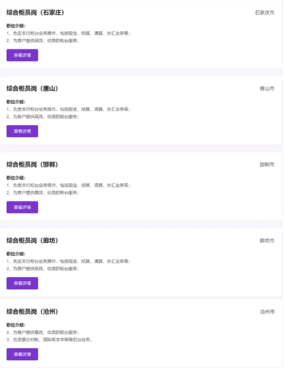 (一)应聘者每人仅限投递2个岗位。 (二)应聘者应对填报信息和提供材料的真实性、准确性和完整性负责,如与事实不符,我行有权取消其考试和录用资格。 (三)在各招聘环节中,我行将及时通过短信、邮件等方式通知进入下一环节的应聘者;对未能进入下一环节的应聘者,我行不再发布通知。 (四)我行未成立或委托成立任何考试辅导培训班,招聘过程未涉及任何收费项目。 (五)应聘者务必保证提交的联系方式准确无误,并保持通讯畅通,以免遗漏重要通知。查看河北各地最新招聘信息 (六)我行承诺对应聘者信息予以保密,依法保护应聘者相关材料和信息安全。
